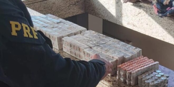 PRF FLAGRA MEDICAMENTOS IRREGULARES ESCONDIDOS EM ÔNIBUS NA BR-277