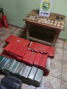 Na noite de segunda-feira (31/1), por volta das 20h15min, policiais militares do 4º Batalhão, em patrulhamento pela rua Senador Salgado Filho, centro, de Mandaguari, tentaram abordar 2 (dois) homens em um veículo VW Gol, cor azul, que estavam em atitude suspeita, os quais não acataram as ordens de parada, aumentaram a velocidade e abandonaram o veículo em uma área de mata. A equipe policial, ao averiguar o referido veículo, localizou em seu interior 230 (duzentos e trinta) tabletes de