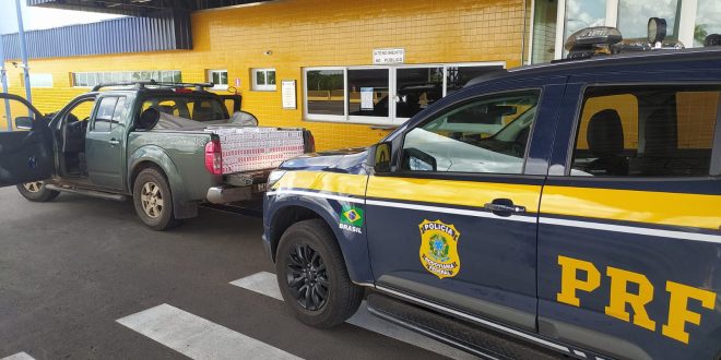 PRF apreende caminhonete abarrotada de cigarros em Pres. Castelo Branco/PR