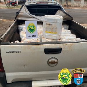 POLÍCIA AMBIENTAL PRESTA APOIO AO 25⁰BPM/3⁰CRPM E AUTUA RESPONSÁVEL POR TRANSPORTE DE AGROTÓXICO CONTRABANDEADO