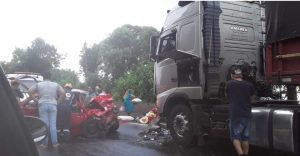 Uma colisão frontal entre um carro e uma carreta terminou em três mortos na BR-376 próximo à Ortigueira.
