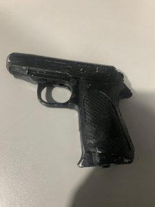 Em desloamento para realizar abastecimento da viatura a equipe foi solicitada pela vítima na rua que informou que acabara de sofrer tentativa de Roubo a mão armada, que de imediato foi colhido as características do indivíduo sendo este uma pessoa baixa, magra, parda, camiseta azul e estaria portando uma pistola de cor preta, informou ainda que o autor não teria consumado o fato e saiu correndo do local. A equipe efetuou buscas na direção mencionada pela vítima, o qual um terceiro informou que um suspeito teria dispensado um objeto, na rua Nazaré numeral 21 o qual foi localizado um simulacro sem identificação ou marca, tipo pistola, realizando patrulhamento porém o autor não foi localizado. Ao ser indagada a vítima relatou que o local é monitorado por câmeras, porém não teria acesso no momento, orientado a encaminhar posteriormente as imagens a delegacia. O Simulacro foi apreendido encaminhado à 21 SDP de Cianorte.