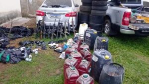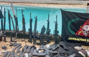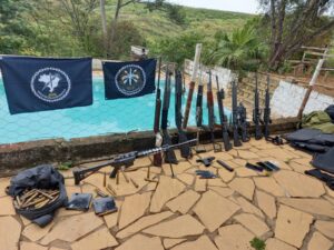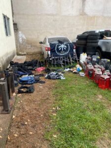 Explosivos, armas longas ponto 50 e 10 fuzis, além de outras armas, munições, granadas, coletes, miguelitos foram apreedidos. Pelo menos 10 veículos roubados foram recuperados.