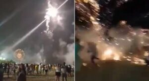 De acordo com o primo da vítima que estava no local, durante a queima de fogos um rojão se prendeu na roupa da mulher e explodiu. O momento em que a mulher foi atingida por um rojão foi registrado em vídeo.