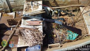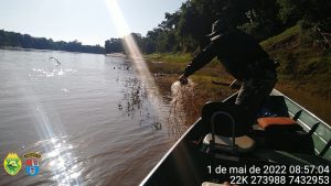 Durante o Programa V.I.G.I.A., por meio da Operação Hórus do Ministério da Justiça e Segurança Pública do Governo Federal, o efetivo do Batalhão de Polícia Ambiental – Força Verde da Polícia Militar do Paraná, empregados na Base Interestadual Trarbach, durante patrulhamento aquático pelo Rio Ivai realizou a autuação de dois pescadores em duas situações distintas. O primeiro fato ocorreu por volta das 9 hr nos fundos do município de Tapira, onde um pescador foi flagrado correndo redes de emalhar. A segunda ocorrência ocorreu nos fundos do município de Douradina onde a equipe visualizou um pescador no interior do rio se evadindo rapidamente para a margem, onde pulou do barco e se embrenhou na mata, sendo localizado na seguenciai escondido no capim, o qual portava uma espingarda do tipo carabina municiada com cinco cartuchos. Após ser dado voz de prisão ao pescador a equipe localizou um espinhel que estava correndo e peixes que havia capturado. O pescador foi conduzido e autuado em flagrante na delegacia de polícia de Umuarama, além de ser autuado administrativamente por pescar com petrechos de uso proibido.