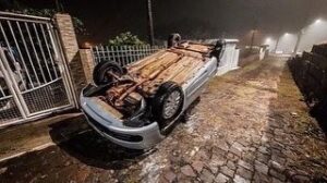 Carro capotou em bairro de São Miguel do Oeste (Foto: Divulgação/103 FM)