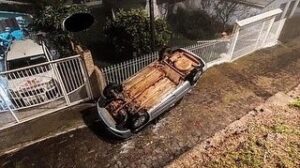 Carro capotou em bairro de São Miguel do Oeste (Foto: Divulgação/103 FM)