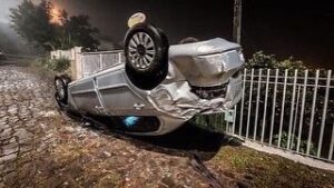 A motorista perdeu o controle do veículo, que acabou andando de ré até cair em uma estrada secundária e capotar. O Volkswagen Voyage, com placas de Iporã do Oeste, teve danos materiais consideráveis.