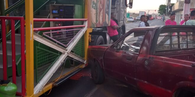 Um animador foi atropelado por uma utilitária, ele estava na porta do caminhão, momento esse que um veículo Pampa acabou saindo de um posto de combustível e bateu na carreta atingindo a vítima. O acidente ocorreu na Avenida Ademar Bornia.