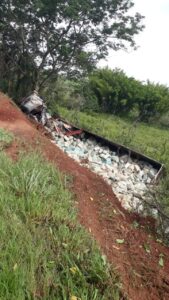 Como o caminhão ficou fora da pista, local de difícil acesso para sua retirada, foi orientado pelos policiais para efetuar a retirada da carga e do caminhão nessa terça-feira (03).