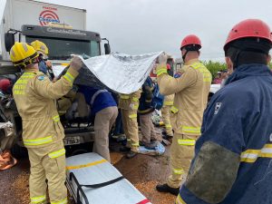 Uma intensa operação foi montada para o socorro dos feridos. A vítima que inspira mais cuidados após ser retirada dos ferros retorcidos do veículo, foi encaminhada de helicóptero ao Hospital Santa Casa de Maringá, ela séria a passageira do automóvel. A segunda vítima que dirigia o carro e a criança de 5 anos, sofreram ferimentos moderados onde também foram socorridas. Os ocupantes do caminhão não se feriram.