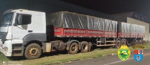 Na ocasiao, a Equipe efetuou abordagem ao veículo, e em consulta ao sistema, notou se divergência nas características apresentada para aquele emplacamento. Já em busca mais detalhada no chassi do bitrem, constatou que os dois semi-reboques eram produtos de roubo na cidade de Arapongas- PR, ocorrido em maio de 2021.