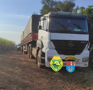 Ao longo das ações, os Policiais, visualizaram um caminhão, as margens da estrada rural.