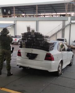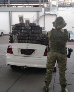 Em revista veicular ficou constatado que o carro estava carregado com 207,17kg de substância análoga a maconha e 3,07 kg de substância análoga a skunk.