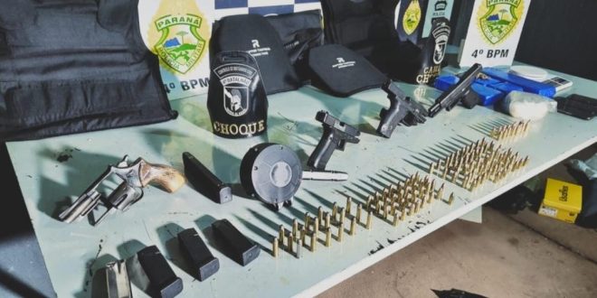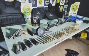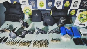 Com os indivíduos foram encontrados 4 armas de fogo, munições, carregadores, colete balístico e maconha além de crack. Tudo foi apreedido.