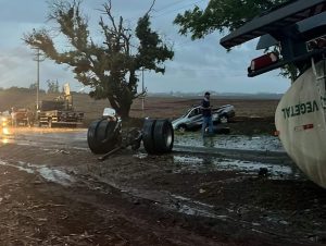 Foi envolvendo uma caminhonete F 1000, uma carreta e um caminhão, além de um Fiat Strada, Uno e também uma moto. No local teria ocorrido um engavetamento envolvendo esses veículos.