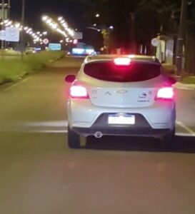 A senhora ocupava um carro que acabou se envolvendo em uma colisão com outro veículo que fugiu do local. Um motociclista que presenciou o acidente foi atrás do carro e filmou o momento da fuga.