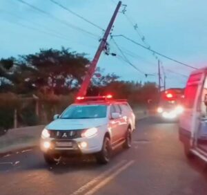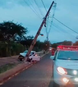 Conforme as informações do Serviço de Atendimento Móvel de Urgente que atendeu a ocorrência, um carro do modelo Volkswagen Gol acabou batendo com muita violência em um poste. O veículo ficou com a frente totalmente danificada.