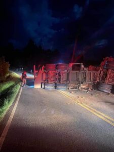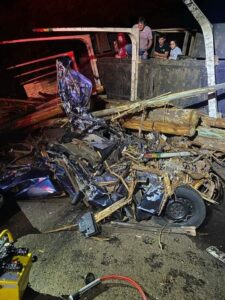 Pelo menos cinco pessoas acabaram morrendo. Uma carreta tombou em cima de dois carros, ela estava carregada com toras de madeira, os veículos ficaram embaixo da carga onde as cinco pessoas acabaram morrendo esmagadas.