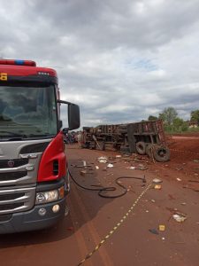 Colisão entre Caminhão e veículo na PR-323, 1 vítima em estado grave presa as ferragens. Equipes bombeiro e SAMU a caminho!