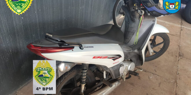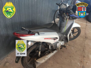 Na tarde desta segunda (09), policiais militares do 4º Batalhão em patrulhamento pelo bairro Odwaldo Bueno, avistaram uma motoneta HONDA/BIZ de cor branca em atitude suspeita. Ao avistar a aproximação da viatura, o indivíduo empreendeu fuga, tendo sido abordado após breve acompanhamento no Jardim Santa Felicidade. Foi constatado que a moto é produto de furto e em posse do detido havia pequena quantidade de crack. A motoneta, o indivíduo abordado e a droga foram encaminhados até a 9° SDP para providências cabíveis.