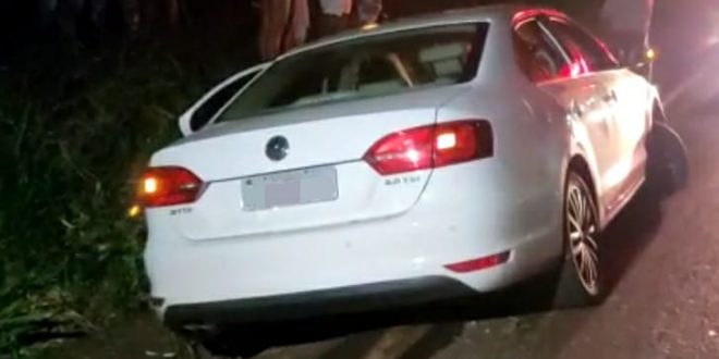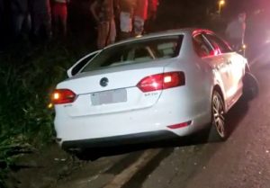 Um condutor por algum motivo acabou perdendo o controle do seu carro, invadindo o sentido contrário da rodovia, parando somente ao cair em uma canaleta.