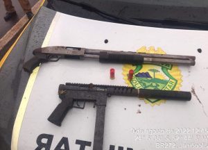 Com o criminoso ferido os policiais apreenderam uma escopeta calibre 12 e uma submetralhadora. “Ele foi levado o hospital de Campo Mourão para atendimento e depois encaminhado para a delegacia de Mamborê, onde teve origem a ocorrência”, relatou. Segundo a PM, a quadrilha é de Goioerê.