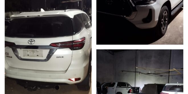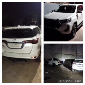 A equipe CHOQUE localizou em um barracão dois veículos produto de furto, sendo uma Toyota Hilux e uma Toyota SW4 furtados horas antes.
