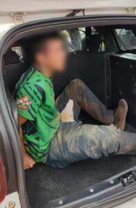 Um envolvido foi preso. O outro conseguiu fugir para uma região de mata. O helicóptero Falcão da PM foi chamado e realiza buscas na região. Dois tiros atingiram o PM, no braço e na coxa, um tiro também teria atingido de raspão a região da costela.
