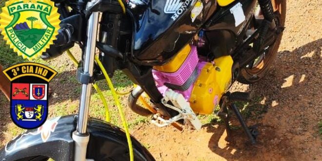 Portanto, o suspeito foi conduzido ao Destacamento PM de Querência do Norte para providências cabíveis. A motocicleta foi apreendida para posterior encaminhamento à CIRETRAN regional e foram lavradas as devidas notificações de trânsito.