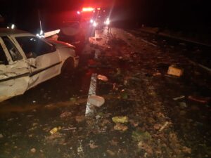 O acidente ocorreu na noite desta terça-feira, 10, por volta das 20h30, no km 192 da BR 376.
