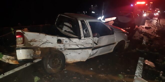 Um utilitário VW Saveiro conduzido por um homem de 50 anos, invadiu a pista contrária e colidiu frontalmente contra outro veículo, um Hiundai HB20, conduzido por um homem de 42 anos.