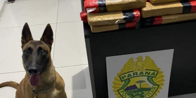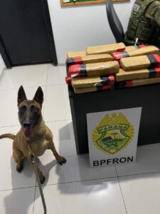 Durante buscas o cão de faro indicou para as bagagens de um adolescente de 16 anos. Na bagagem foram encontradas a quantia de 15 quilos de substância análoga a maconha.