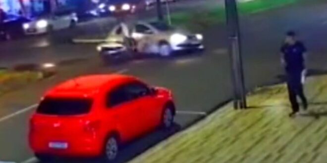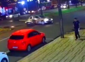 CÂMERA DE SEGURANÇA REGISTROU BATIDA ENTRE CARRO E MOTO QUE DEIXOU MULHER COM FERIMENTOS GRAVES EM MARINGÁ
