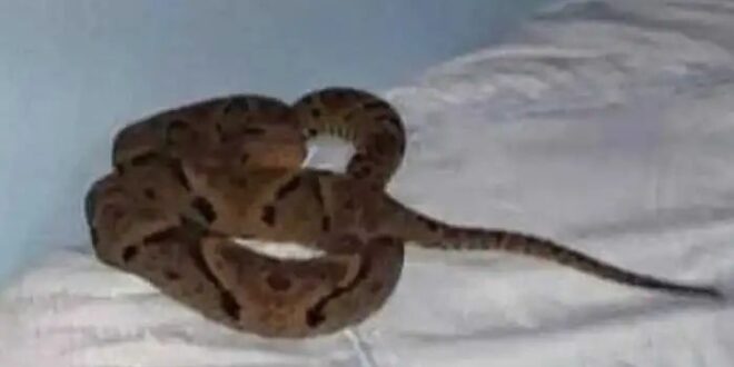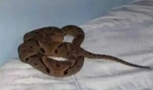 No local foi encontrada uma cobra, da espécie Jararaca, em cima da cama do casal. Os proprietários disseram que estavam dentro de casa quando perceberam a presença do réptil.