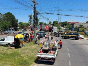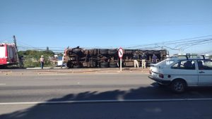 A população queria saquear por todo o custo a carga. O caso aconteceu na BR-392, em Santa Maria, no Rio Grande do Sul.