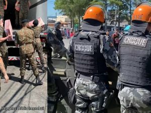 O Exército e a equipe Choque além de outras unidades da PM e PRF, precisaram ser acionados para intervir que carnes fossem roubadas de uma carreta que acabou tombando