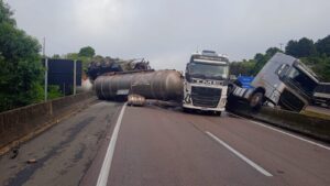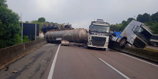 Ocorreu um acidente envolvendo caminhões na BR 277, KM 138,5, em frente ao Posto da PRF de São Luís do Purunã.