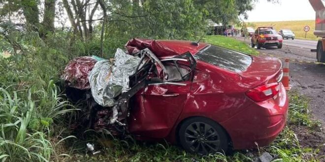 A colisão foi entre um automóvel emplacado em Santo Antônio do Sudoeste e um caminhão. A vítima, Laudes Maria Luckemeyer que estava no carro ficou presa nas ferragens.