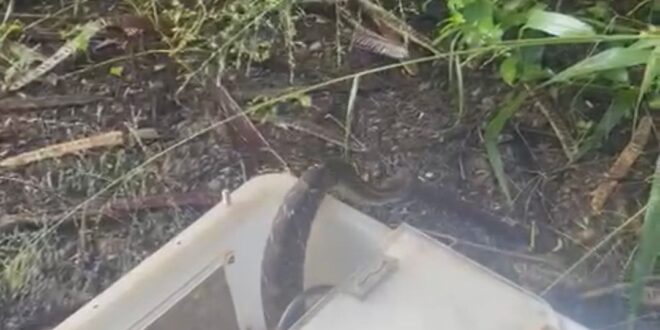 Após a coleta, e devido ao estado bravio que o réptil apresentava, e ainda sem ferimentos, foi efetuado a reintroducao em seu habitat.