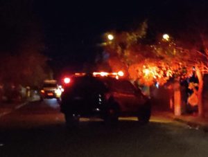 Um indivíduo portando uma arma de fogo teria invadido uma residência e atirado contra os moradores que seria um casal, na sequência ele fugiu pulando muros de casas. A PM foi informada, no momento um cerco foi montado, eles localizaram o indivíduo. Foi tentado a abordagem mas ele atirou contra os policiais que tiveram que revidar.