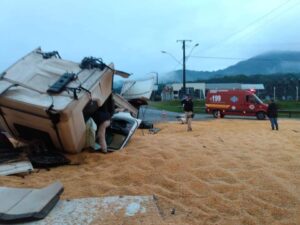 De acordo com informações preliminares, uma carreta acaba de despencar do viaduto na BR 101, sentido norte, na altura de Penha. A queda ocorreu após a colisão com um carro no km 105.