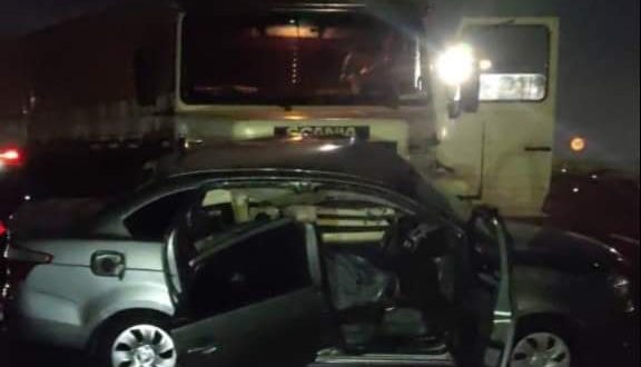 De acordo com a PRE, um veículo Fiat Siena ocupado por duas pessoas, acabou sendo atingido na lateral por uma carreta. O impacto foi extremamente violento e o condutor do carro acabou morrendo na hora. A passageira foi socorrida e encaminhada para o Hospital Honopar em estado grave.