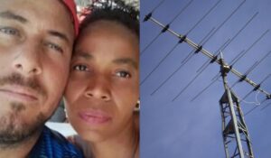 A esposa, identificada como Josenilda Tosta Sena, de 37 anos, tentou salvar o marido, mas também foi atingida pela descarga elétrica.