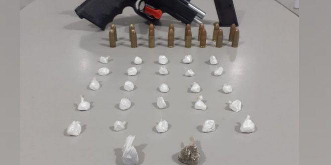 Por volta das 22h20min, deste dia 18 de janeiro, a equipe ROTAM em patrulhamento pela cidade de Nova Esperança abordou um homem, 26 anos, em frente a uma residência que agiu de maneira suspeita, de pronto realizado abordagem policial nada de ilícito foi localizado, a equipe percebendo que havia algo de errado questionou e o abordado disse que não havia nada. Ao realizar busca na residência em cima da mesa da cozinha dentro de um capacete foi localizado uma porção de cocaína e uma porção de crack, em seu veículo localizado uma porção de maconha. No guarda roupa do casal foi localizado uma pistola calibre 9mm, com 16 munições intactas, que o mesmo afirmou ser para sua defesa, já que vem sendo ameaçado. Sobre a droga informou que uma outra pessoa pediu para que ele guardasse.