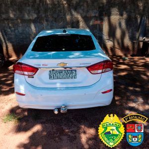 Em patrulhamento a os policiais militares avistaram um veículo Chevrolet/Cruze estacionado, veículo que havia sido roubado na noite anterior.