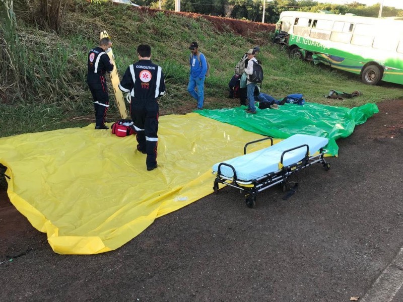 Acidente grave próximo de Iguaraçu – Várias vítimas socorridas pelos Bombeiros e SAMU – Batida entre carro X ônibus