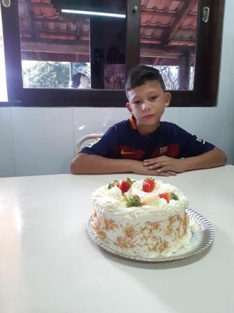 Ontem me deu um bombom no cruzamento, falei que não tinha dinheiro, falou que era presente pra mim e pro meu motorista. Quando estava saindo do local ele me disse que fez aniversário e não tinha ganhado um bolo. Hoje voltei no cruzamento, comprei o bolo e fizemos a surpresa pra ele na 1ª Companhia do 20° BPM.
