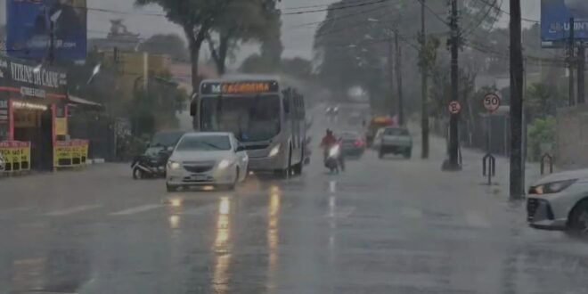 A faixa litorânea também continua em alerta, com a circulação do mar ajudando a formar nuvens de chuva. Já no centro-sul, as pancadas serão mais isoladas, com predominância de nebulosidade.