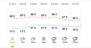 Está primeira semana marcada pelo início do outono em Maringá, noroeste do Paraná, as temperaturas poderão auxiliar com as máximas de 26°C a 30°C, e mínimas de 17°C a 21°C, também podendo ocorrer pancadas de chuva a partir da próxima sexta-feira (25).